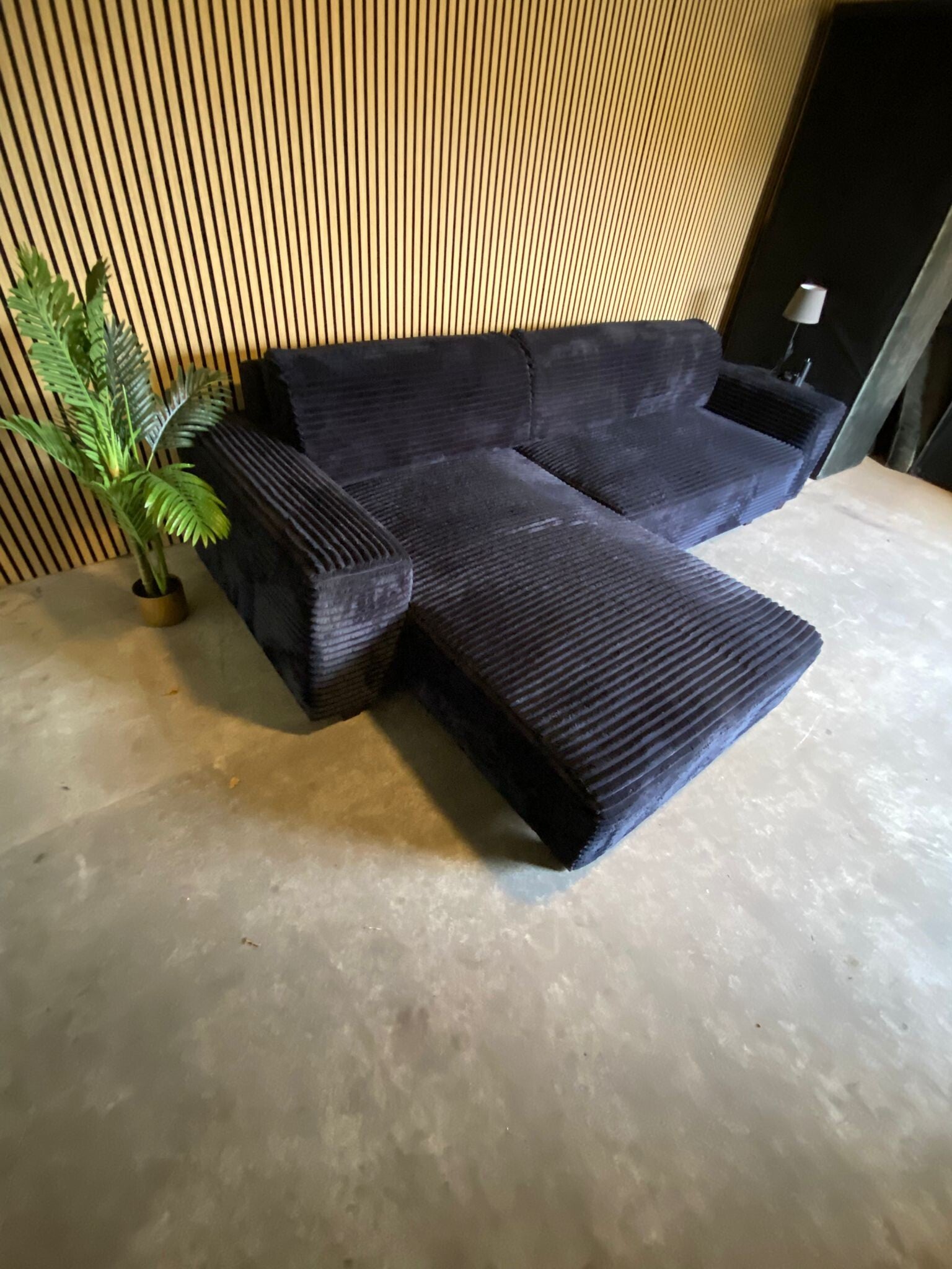 ZWARTE VELVET RIBSTOF HOEK/SLAAPBANK