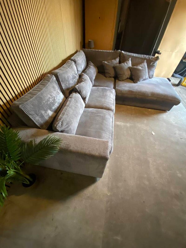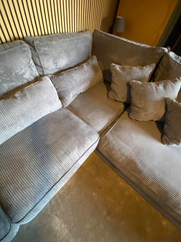 GRIJZE VELVET RIBSTOF HOEKBANK