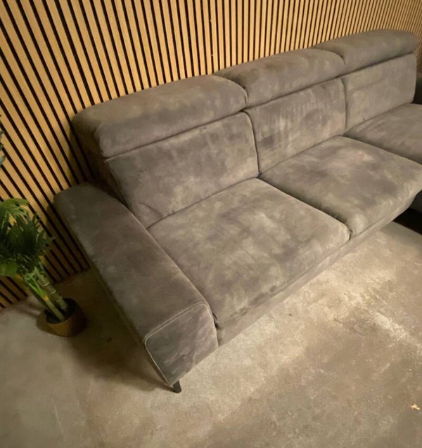 Deze groene hoekbank verkeert in nieuwstaat. Als ik zou zeggen dat ie nieuw is, dan zou je me geloven. Gemaakt van velvet en bestaande uit 2 elementen is dit een bank om je vingers bij af te likken, spreekwoordelijk gezien natuurlijk. De hoofdsteunen zijn verstelbaar. Vanwege de velvet stof is ie gevoelig voor stofvegen, als je er overheen wrijft verandert de kleur. Een praktisch nieuwe bank voor een 2ehandse prijs. Kan ook alleen maar bij de hoekbankbaas.
